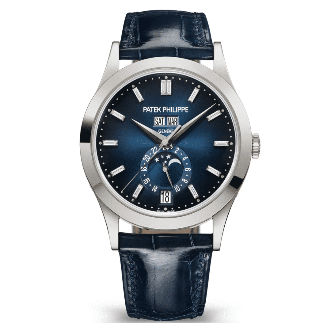 At a late-night gallery opening, the blue dial catches the roomโs muted light as you raise your wrist. The 38.5mm steel case sits cleanly on the wrist, its minimalist silhouette pairing easily with a blazer or casual layer. Dial and hands are legible at a glanceโstick markers, clean indices, and a sapphire crystal that holds its clarity. Powered by a Caliber 324 S C-inspired mechanism, it carries a 35-hour reserve for daily timing. Water resistance to 30 meters adds practical protection for everyday wear. The 904L stainless steel case and bezel glow with a steel finish, paired with a blue leather strap and folding clasp. This piece is an homage to classic complication design, not affiliated with Patek Philippe. Priced at $1,150.00 with a two-year warranty, it offers accessible refinement.