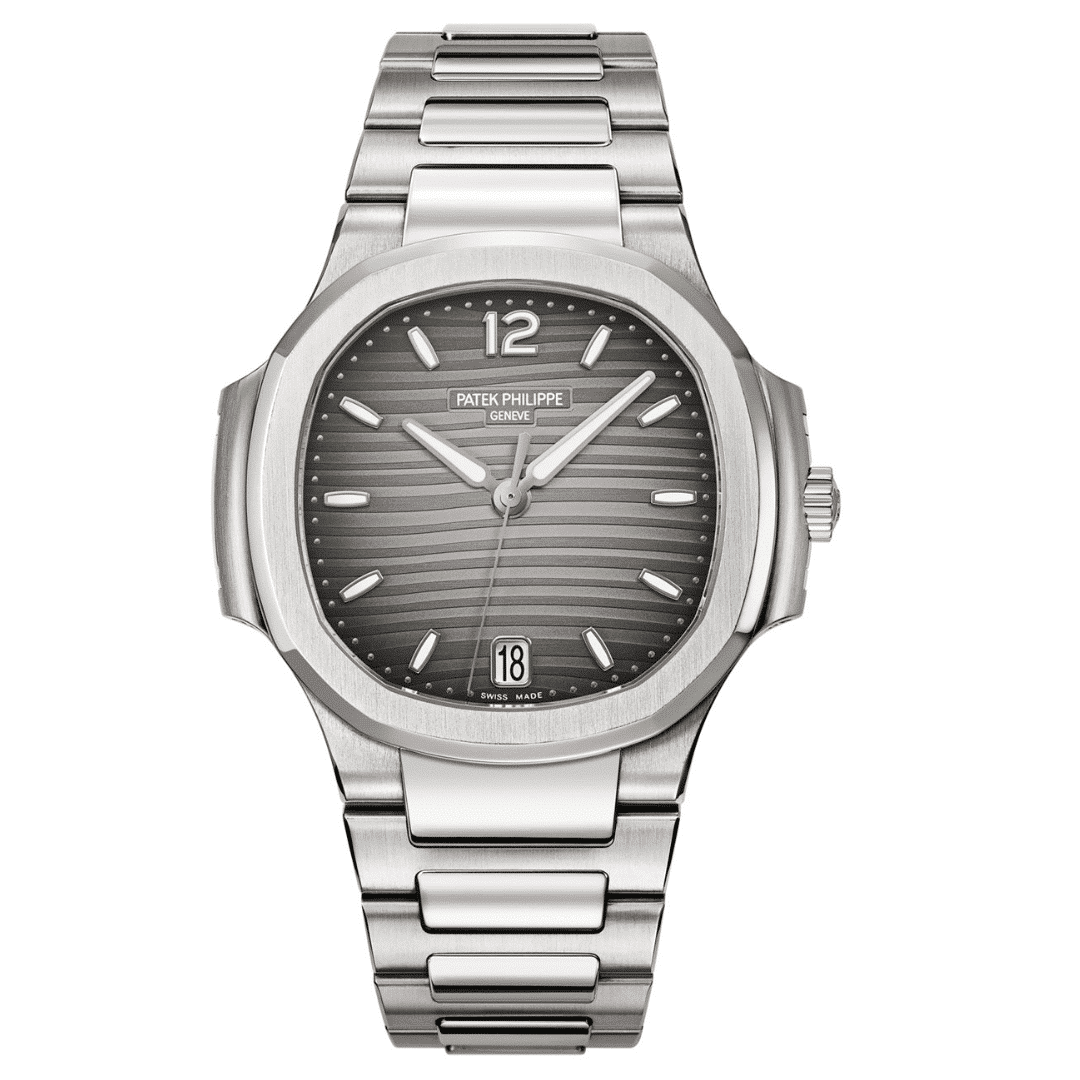 Nautilus-inspired steel watch with a grey dial, delivering refined presence at a reachable price.